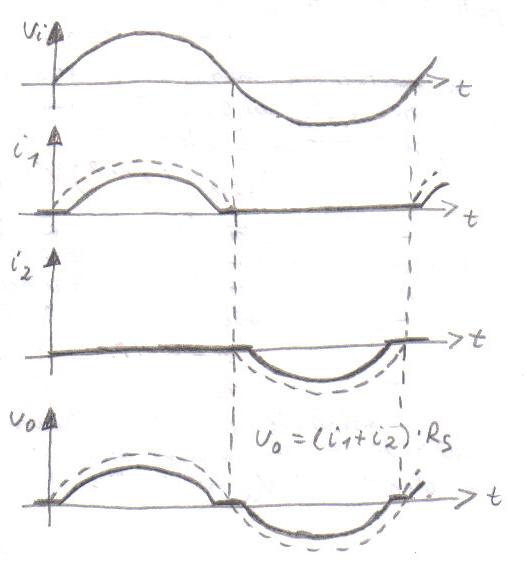 functioneaza pe rand, umul pe semiperioada pozitiva a tensiunii de intrare,