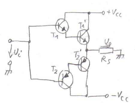 se obtine schema de mai jos, care are amplificarea de putere mult marita