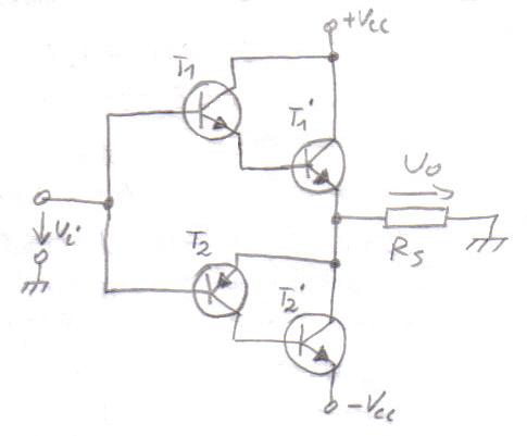 si T2 = pnp ) din desenul de mai jos, numita in contratimp, deoarece tranzistoarele