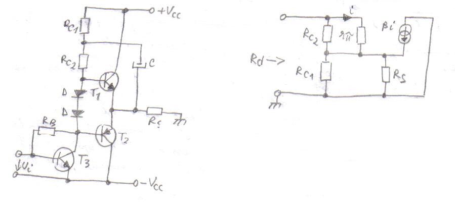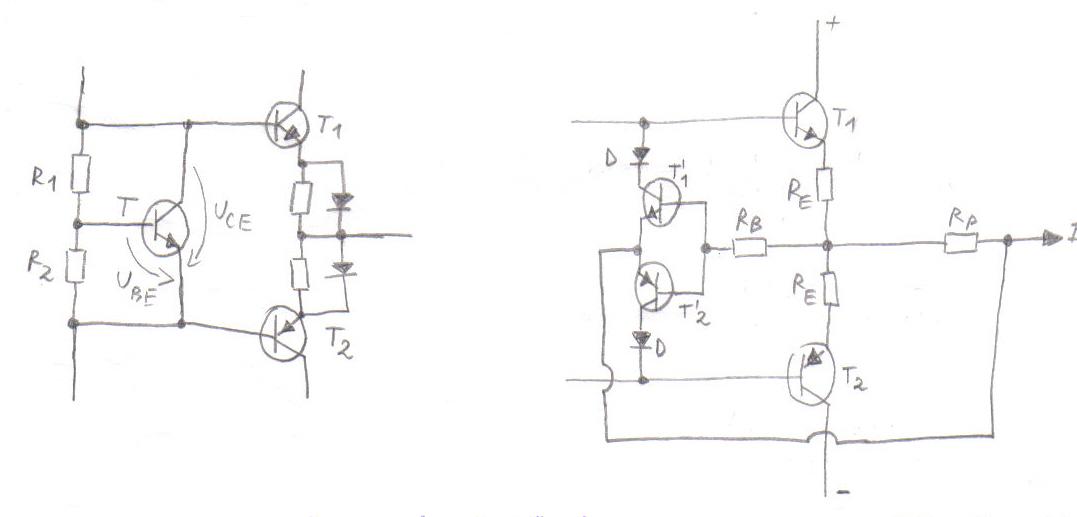 curent de baza pentru tranzistorul T2 ( de putere ). Mai poarta numele de dublet.