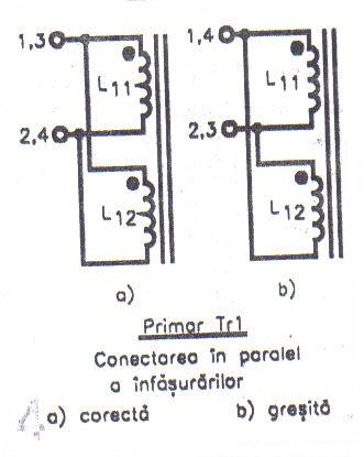 mai precis sa conectam cele doua infasurari in acelasi sens - inceput la inceput
