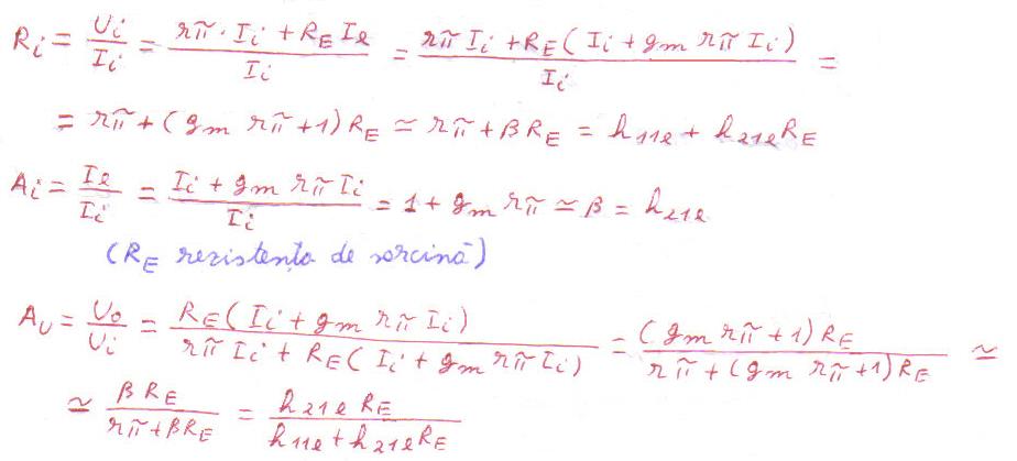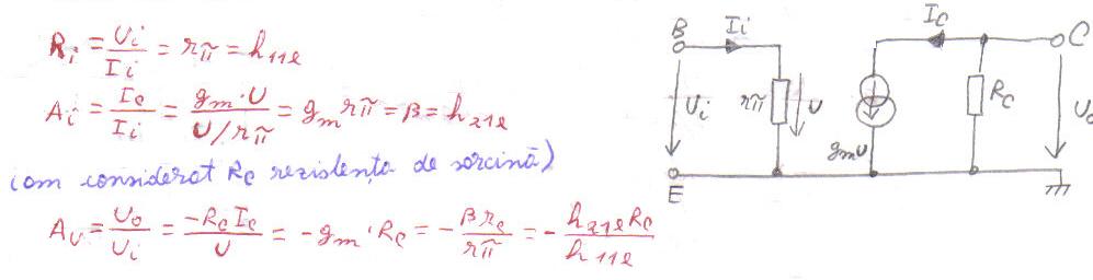 joase si medii se neglijeaza condensatoarele. In schema cu parametrii h, se