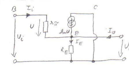 - Pentru conexiunea baza comuna (BC), schema echivalenta de semnal mic o gasiti mai jos: